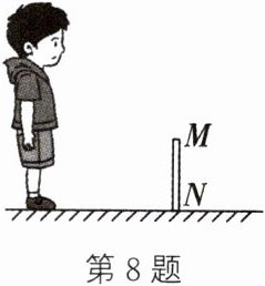 8. (2024·宁波海曙期中)如图,水平地面上竖立一平面镜MN,人直立在平面镜前观察自己在平面镜中的像,已知此时他看不见自己的脚在平面镜中的像。为了能观察到自己的脚在平面镜中的像,他应该 (