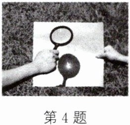 4. 如图所示,将一个凸透镜正对太阳,其下方 20 cm 处的白纸上呈现一个较小的光斑,这个现象告诉我们:凸透镜对光有