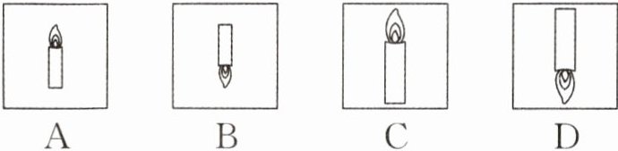 5. 如图所示,把一支点燃的蜡烛放在距离凸透镜2倍焦距以外的地方,在透镜的另一侧调节光屏位置可找到一个清晰的像。这个像是下图中的(