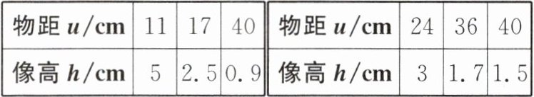 |物距u/cm|24|36|40|