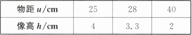 |物距u/cm|25|28|40|