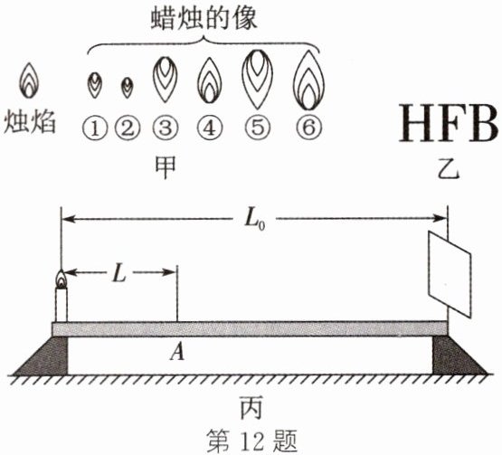 (3)小玉还发现,若固定蜡烛与光屏间的距离为L₀不变,只移动凸透镜。设蜡烛与凸透镜第一次成清晰像所在位置A 间的距离为L,如图丙所示,再次移动凸透镜,设第二次成清晰像 的位置为B(图中未画出),则前后两次成清晰的像所在位置A、B 之间的距离为______