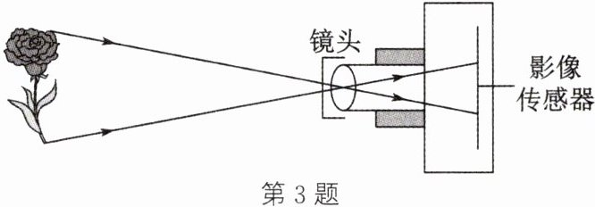 3. (易错易混)(2024·杭州段考)如图所示,普通数码相机拍照时,镜头相当于一个凸透镜,影像传感器相当于光屏。拍照时,将镜头对准景物,相机通过自动调节,就能得到清晰的像。下列说法正确的是 (