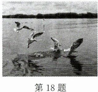 18. 哈素海是呼和浩特市一处著名的旅游景点。深秋时节,一群南飞的鸿雁经过清澈见底而且平静的湖面,如图所示。当某只鸿雁距水面120m时,这只鸿雁的倒影与它的距离为
