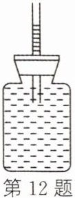 12. 如图所示,在玻璃瓶中装满水,然后用带有细玻璃管的橡胶塞塞紧瓶口,用力挤压玻璃瓶壁,发现细玻璃管内水面上升了,对此现象产生的原因,小明提出了两种猜想: