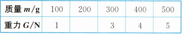 |重力G/N|1| |3|4|5|