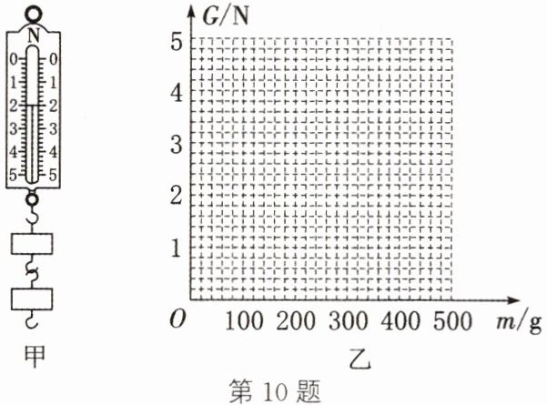 (2)根据上述表格中的实验数据,在图乙中画出重力与质量的关系图像。