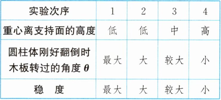 。(3)分析小明的实验数据,发现圆柱体的稳度还与