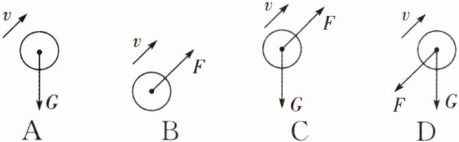 8. 足球运动员把足球踢向空中,若不计空气阻力,用v表示足球飞出的方向,G表示重力,F表示脚对球的作用力,则下列表示足球在空中飞行时的受力图中,正确的是 (
