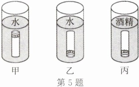 (2)若用体积相同的酒精($\rho_{酒精}<\rho_{水}$)进行实验,如图丙所示,塑料瓶在酒精里的位置与图乙相同,则图