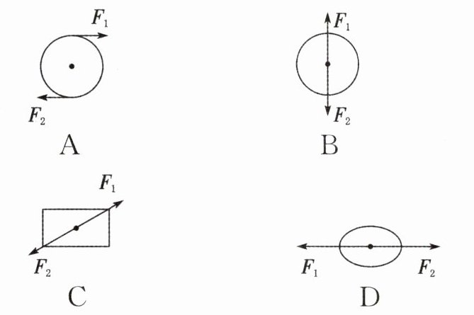 2.如图所示,$F_{1}等于F_{2}$时,下列各对力中,不属于二力平衡的是(