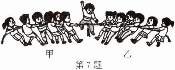 7.如图所示为甲、乙两队拔河比赛的场景,当甲、乙两队处于僵持状态(静止状态)时,若甲队所用拉力为1200N,则乙队所用的拉力为