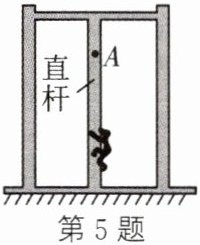 5. 如图所示,重为500N的小科沿着竖直放置的直杆匀速上爬,此阶段他受到的摩擦力为$f_1;$小科停在A处稍作休息,此阶段他受到的摩擦力为$f_2;$之后沿杆匀速下滑,此阶段他受到的摩擦力为$f_3。$下列说法中,正确的是(