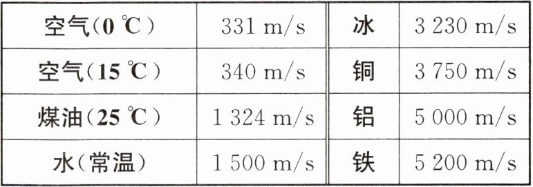 (3)在长为884m的金属管的一端敲击一下,在另一端先后听到两个声音,两声相隔2.43s。声音在金属管中的传播速度是多大?该金属管可能是由什么材料制成的?(此时气温约为15°C)