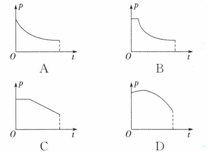 4. 如图所示,将一长方体从水中匀速提起直至下表面刚好离开水面。此过程中,容器底受到水的压强p随时间t的变化,大致如下列图像中的(