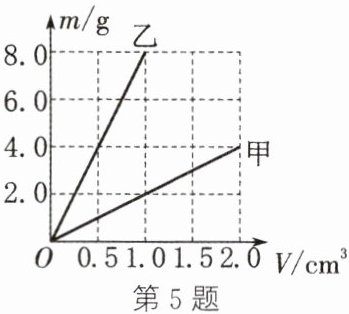 5. (2024·宁波校级期中)如图所示是小聪同学在探究甲、乙两种不同物质的质量与体积的关系时得出的图像,用上述两种物质分别做成甲、乙两个实心正方体,甲的棱长是乙的2倍,把它们放在水平地面上,甲、乙两物体对水平地面的压强之比为(