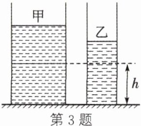 3. 如图所示,底面积不同的圆柱形容器分别盛有甲、乙两种液体,液体对各自容器底部的压力相等。现分别从两容器中抽出液体,且剩余液体的液面到容器底部的距离均为h,则剩余液体对各自容器底部的压强p、压力F的关系是(