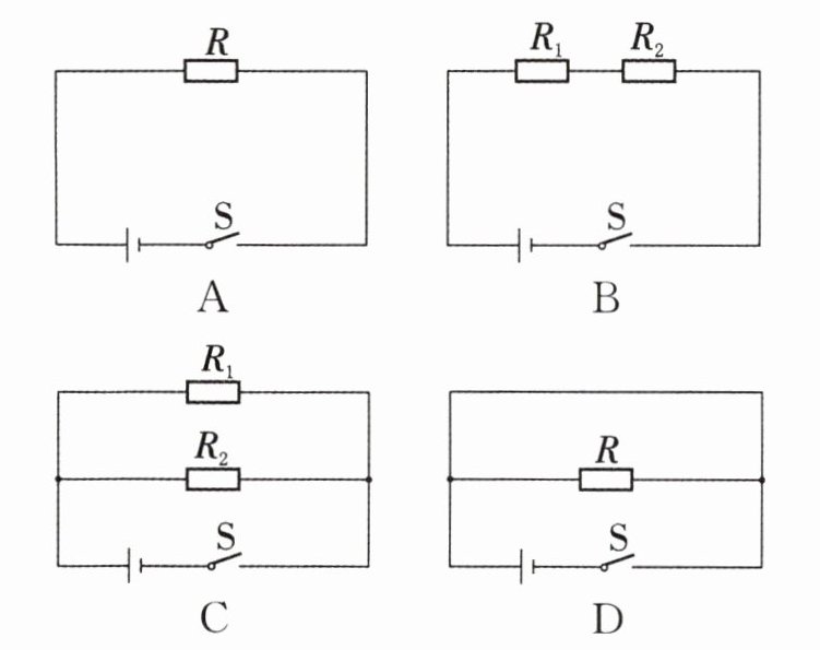 7. 如图所示的电路中,若要使$R_{1}$、$R_{2}$并联,则(