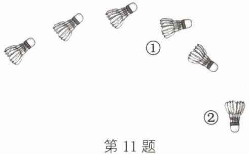 11. (2023·温州)利用频闪照相技术,拍摄击出的羽毛球在相同时间间隔的位置如图所示,则从①→②过程中,羽毛球(