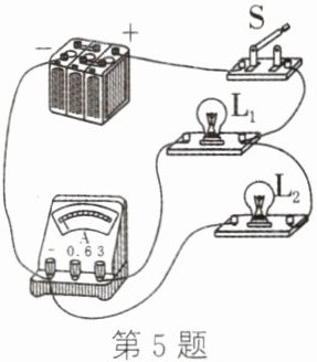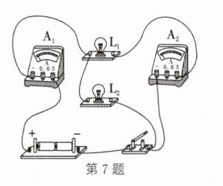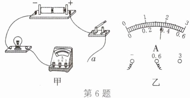 6. 小娴使用电流表测量小灯泡的电流,连接的实验电路如图甲所示。