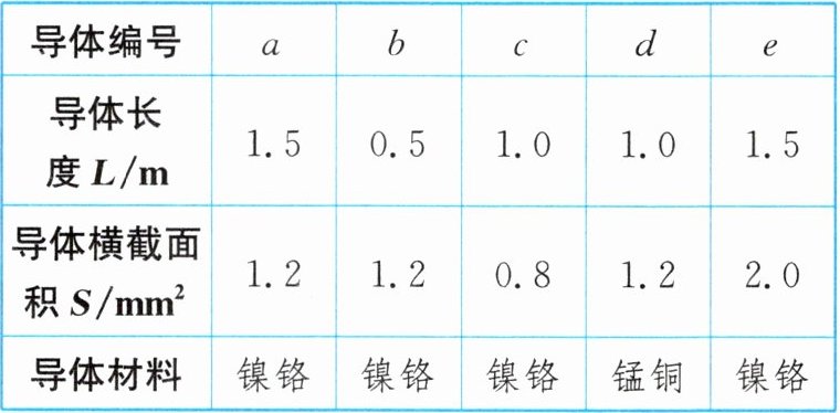 |导体横截面积$S/mm^2$|1.2|1.2|0.8|1.2|2.0|