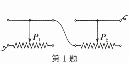 1.(教材P123练习与应用T3变式)将两只滑动变阻器按如图方法连接,要使这两只变阻器连入电路的电阻最大,应把滑片$P_1、$$P_2$分别放在(
