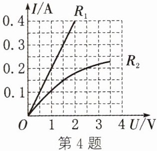 4. 电阻$ R_1$与$ R_2$的 I-U 图像如图所示。当$ R_2$两端的电压为 2.5 V 时$,R_2$的阻值是
