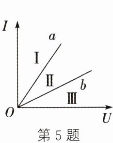 5. (2024·宿州萧县期末)如图,a、b 分别为电阻$ R_1、$$R_2$的 I-U 关系图线,它们把第一象限分成Ⅰ、Ⅱ、Ⅲ三个区域,并联后总电阻位于区域