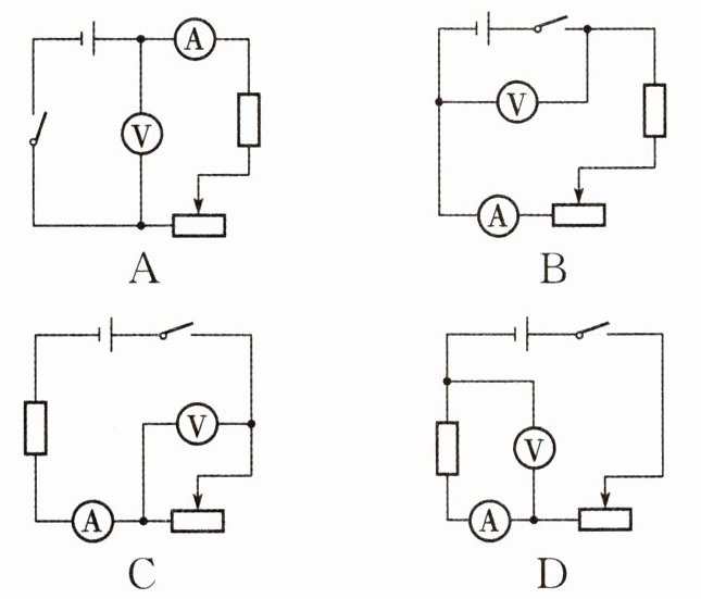 6. 某学习小组在一次实验探究中利用电压表和电流表测得了多组数据,记录如表所示。请根据表中给出的数据,判断分析出他们实验时的电路可能是下列选项中的 (
