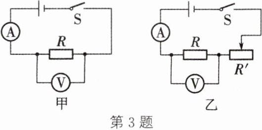 3. 如图所示,甲、乙分别是两同学用伏安法测量电阻R时所设计的电路图。下列说法正确的是(