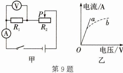9. 小龙利用如图甲所示的电路来测量定值电阻$R_1$的阻值。电源电压恒定为3V,滑动变阻器的规格为“10Ω 2A”。