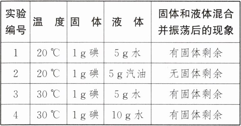 |2|20℃|1g碘|5g汽油|无固体剩余|