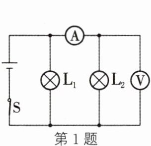 1. 在如图所示的电路中,电源电压不变。闭合开关S后,灯$L_1、$$L_2$都发光。一段时间后,其中一灯突然熄灭,而电流表、电压表的示数都不变,则产生这一现象的原因可能是(