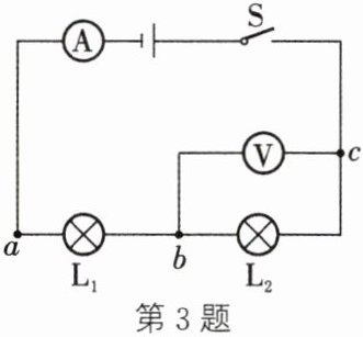 3. 如图所示为某同学做实验时的电路图,若闭合开关S后,发现灯泡$L_1、$$L_2$均不亮,电流表示数为零,电压表示数等于电源电压,则该电路中的故障是(
