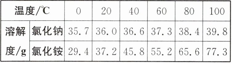 13. 氯化钠和氯化铵固体在不同温度时的溶解度如表。