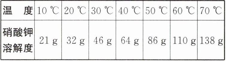 |硝酸钾溶解度|21g|32g|46g|64g|86g|110g|138g|