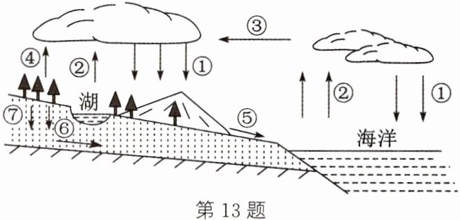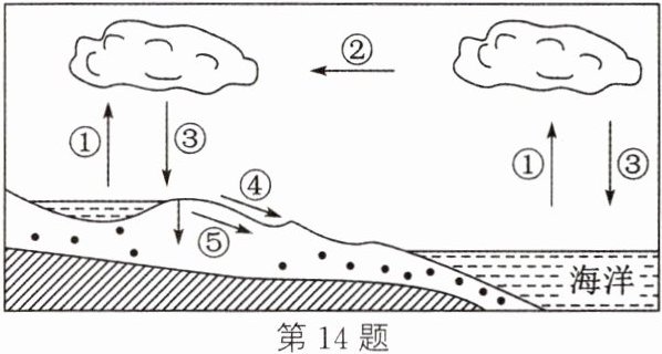 14. 水与人类的活动密切相关,如图所示为“水循环示意图”。请回答下列问题。