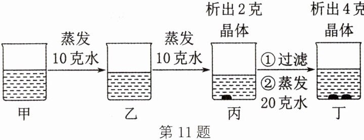 8. (2024·宁波模拟)由表中数据,以及所学的相关知识可知,甲、乙、丙、丁四杯溶液的溶质质量分数关系是 (