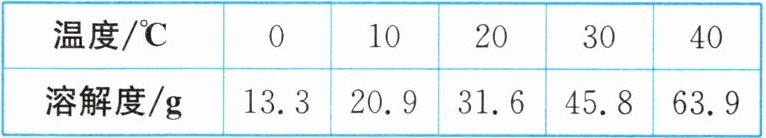 |溶解度/g|13.3|20.9|31.6|45.8|63.9|