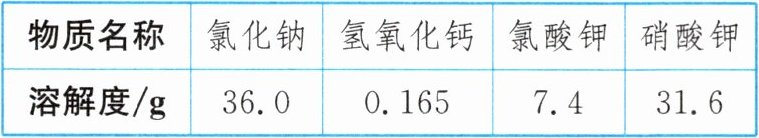 |物质名称|氯化钠|氢氧化钙|氯酸钾|硝酸钾|