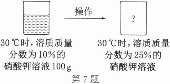 7. 如表是硝酸钾在不同温度时的溶解度,根据表中数据回答下列问题。