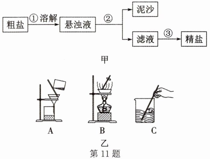 11. 图甲是工厂制盐流程,图乙是实验室操作过程。