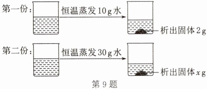 9. (创新考法)氯化钠是食盐的主要成分。红色经典影片《闪闪的红星》中有一段潘冬子给红军送盐的故事,冬子为了躲避敌人的盘查,把食盐全部溶成盐水再用棉衣吸收,最终顺利地将食盐送给了红军。