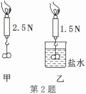 2. 如图,把小石块挂在弹簧测力计下,示数为2.5N,再将石块浸没在盐水中,示数变为1.5N,利用以上信息能求解的物理量是(