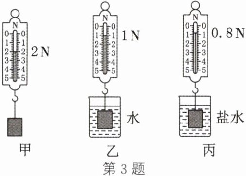 3. 某同学用物块、细线、弹簧测力计、烧杯、水和食盐等器材进行如图所示的实验探究。下列说法正确的是($g取10\ N/kg$) (