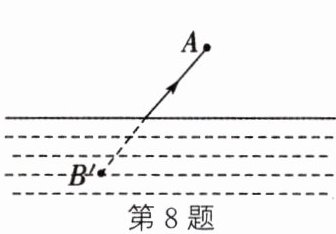 8. 如图所示,B'是人眼在A处透过水面看见的河底一白色鹅卵石的虚像,这一虚像是由光的