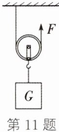 11.反思学习品质。"动滑轮"实验中小宁装置实验,结论:使用动滑轮匀速提升物体,竖直向上拉力F小于物重G。小宁认为,即使不计摩擦绳重,结论成立,物重G动滑轮重G动间满足条件。写出条件,证明。