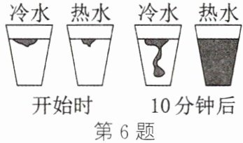 6. (2023·成都)把两滴墨水分别同时滴入盛有冷水和热水的两个玻璃杯中,实验过程及现象如图所示,分析可知,物体的温度越高,分子的无规则运动越