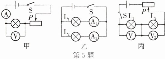 5. 在“探究电功率与电压、电流的关系”的活动中,同学们设计了如图甲、乙、丙所示三个电路。