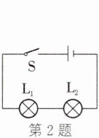 2. 如图所示,将两只额定电压相同的灯泡$L_1、$$L_2$串联在电路中,闭合开关S后,发现$L_1$比$L_2$更亮。若灯泡电阻不受温度影响,则下列说法正确的是 (